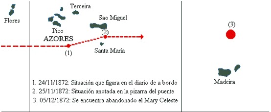 barco a la deriva a 650 Km. Al este de las Azores. Se trataba del Mary Celeste.